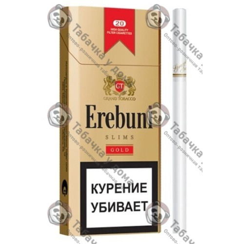 Сигареты Эребуни Голд слимс имеют формат Slim, производятся на табачной фабрике Grand Tabak Inc.. Страна производитель бренда Erebuni - Армения.