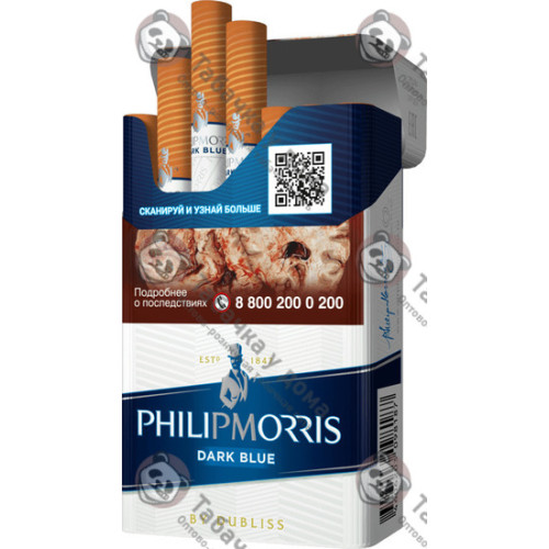 Сигареты Филлип Моррис Дарк блю имеют формат King size, производятся на табачной фабрике Philip Morris International. Страна производитель бренда Philip Morris - Россия.
